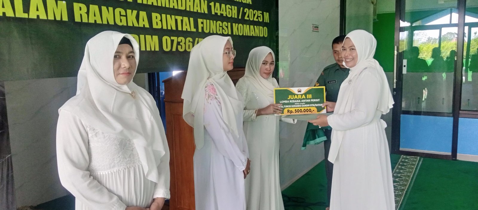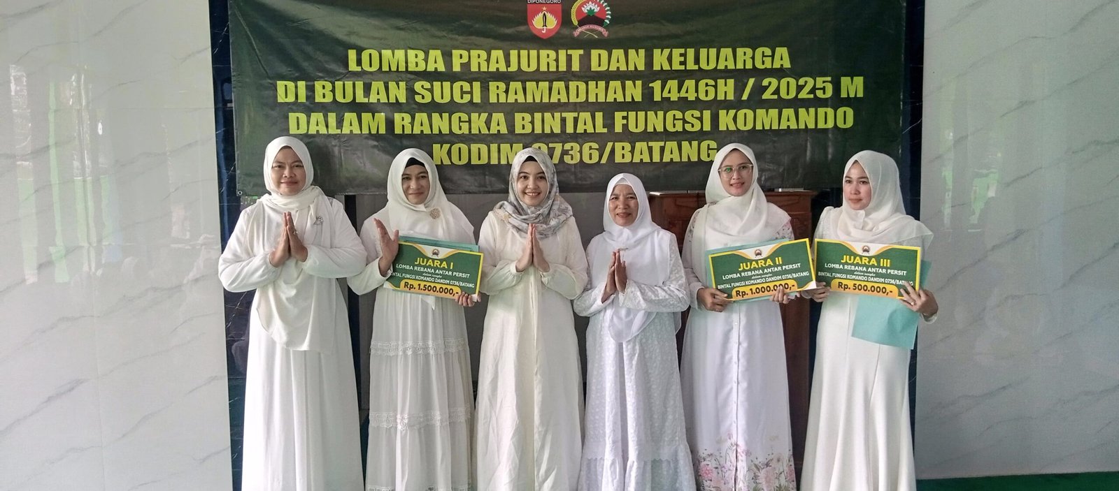 Adapun juara 1 diraih oleh Persit dari ranting Koramil 06/Tersono, juara 2 Persit dari ranting Koramil 08/Wonotunggal dan juara 3 diraih oleh Persit dari Cabang Kodim 0736/Batang.