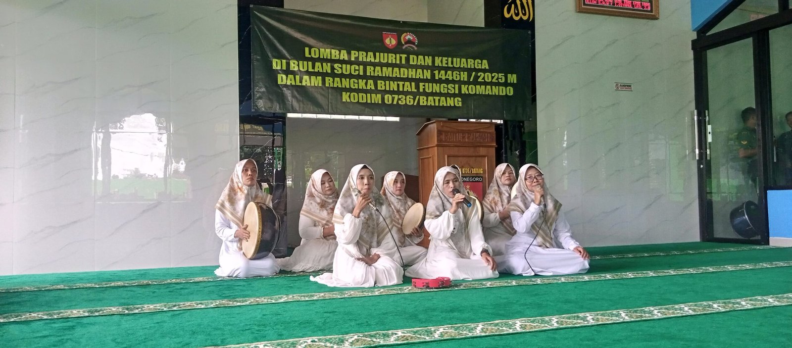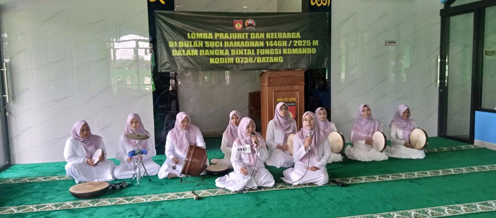 Batang,- Dalam rangka memeriahkan peringatan HUT Persit Kartika Chandra Kirana Ke-79 dan Guna melestarikan seni budaya islam, Kodim 0736/Batang telah menggelar Lomba Qasidah Rebana bertempat di Masjid Baiturrahman komplek Lapangan tembak Paraduta Kombat Desa Tragung, Kecamatan Kandeman, Kabupaten Batang. Kamis (20/3/2025).
