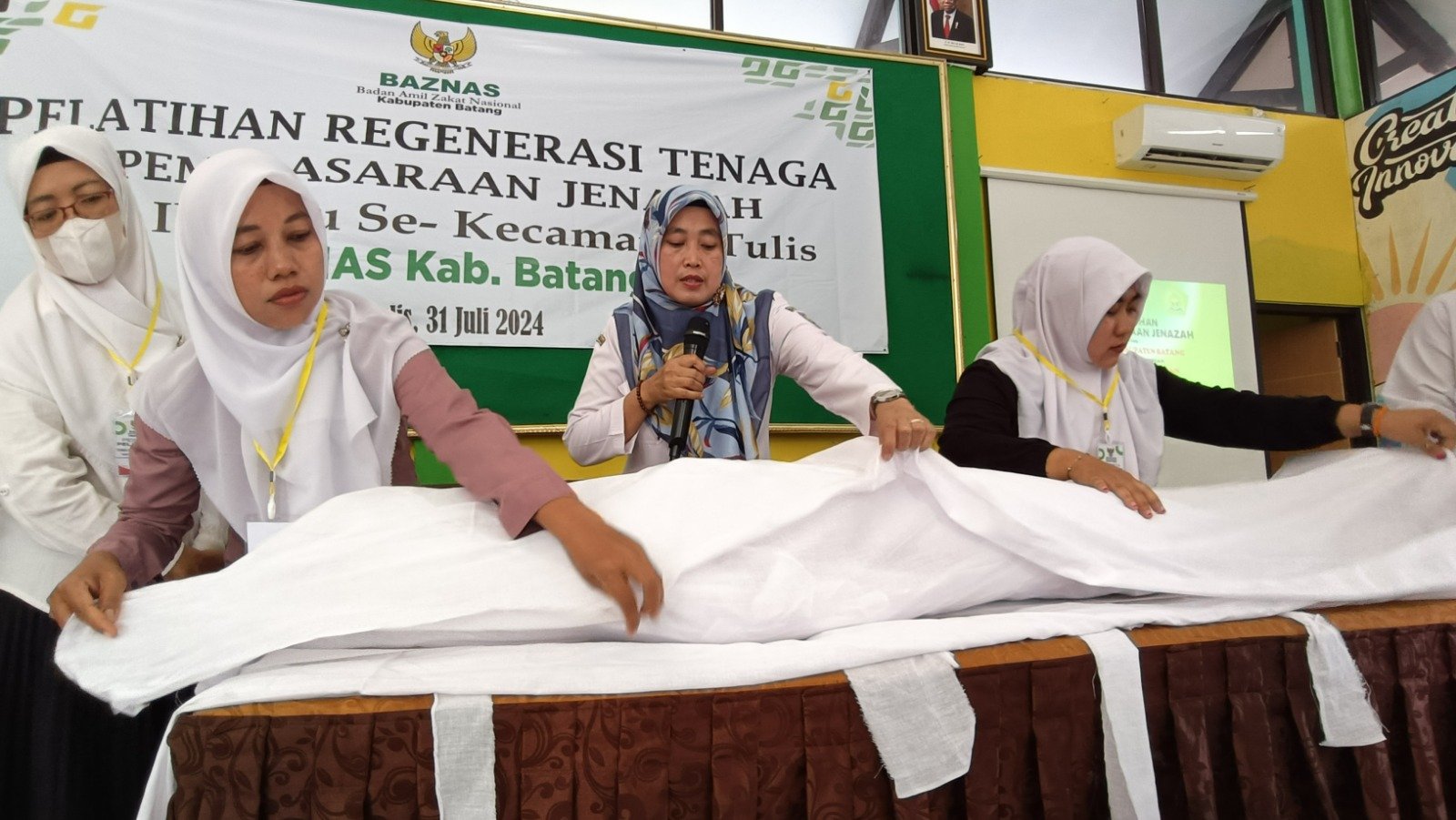 Batang – Para petugas pemulasaraan jenazah yang dirasa kian renta, dikhawatirkan tidak mampu bertugas secara optimal. Maka Baznas Batang menginisiasi digelarnya pelatihan pemulasaraan khusus jenazah wanita, di empat kecamatan percontohan, Gringsing, Reban, Blado dan Tulis.