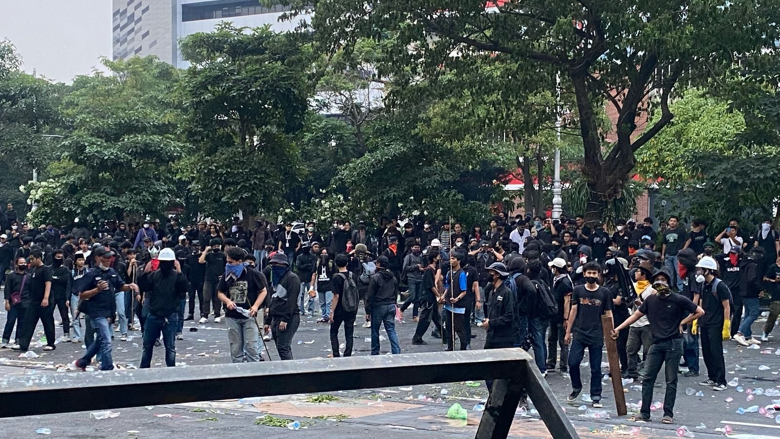 Namun, suasana damai tersebut berubah menjadi ricuh saat sekelompok massa berpakaian serba hitam tiba-tiba muncul sekitar pukul 15.20 WIB. Massa ini diduga merupakan kelompok Anarko yang kerap dikaitkan dengan tindakan anarkistis dalam aksi-aksi serupa di sejumlah wilayah Indonesia.
