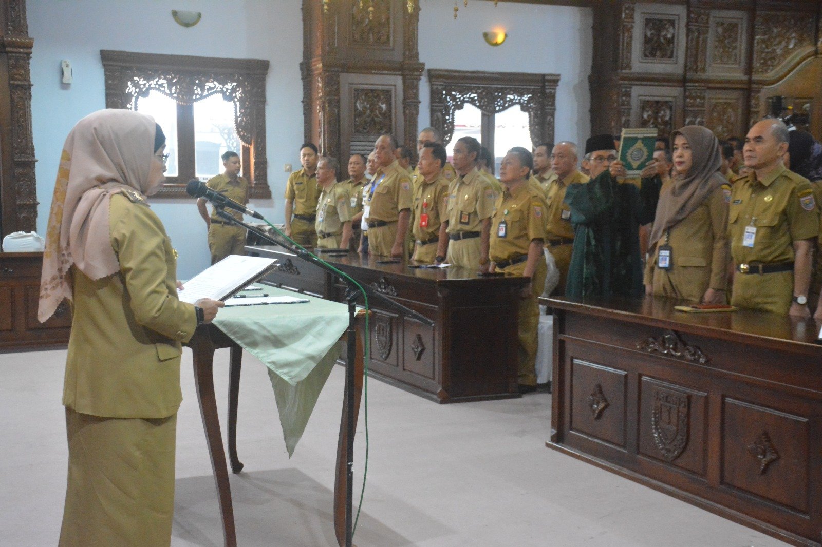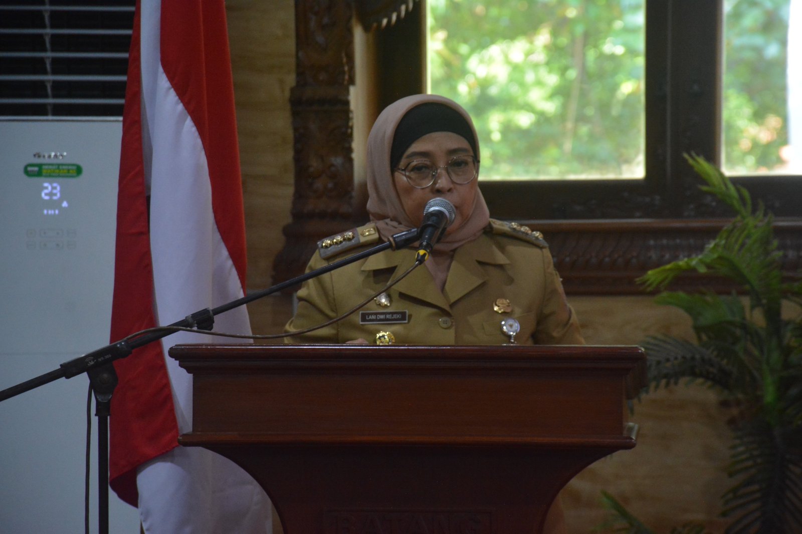 Batang – Penjabat (Pj) Bupati Batang Lani Dwi Rejeki kembali melantik Pejabat Administrator Dan Pengawas di Lingkungan Pemerintah sebanyak 89 orang di Aula Bupati Batang, Kabupaten Batang, Senin (15/7/2024).