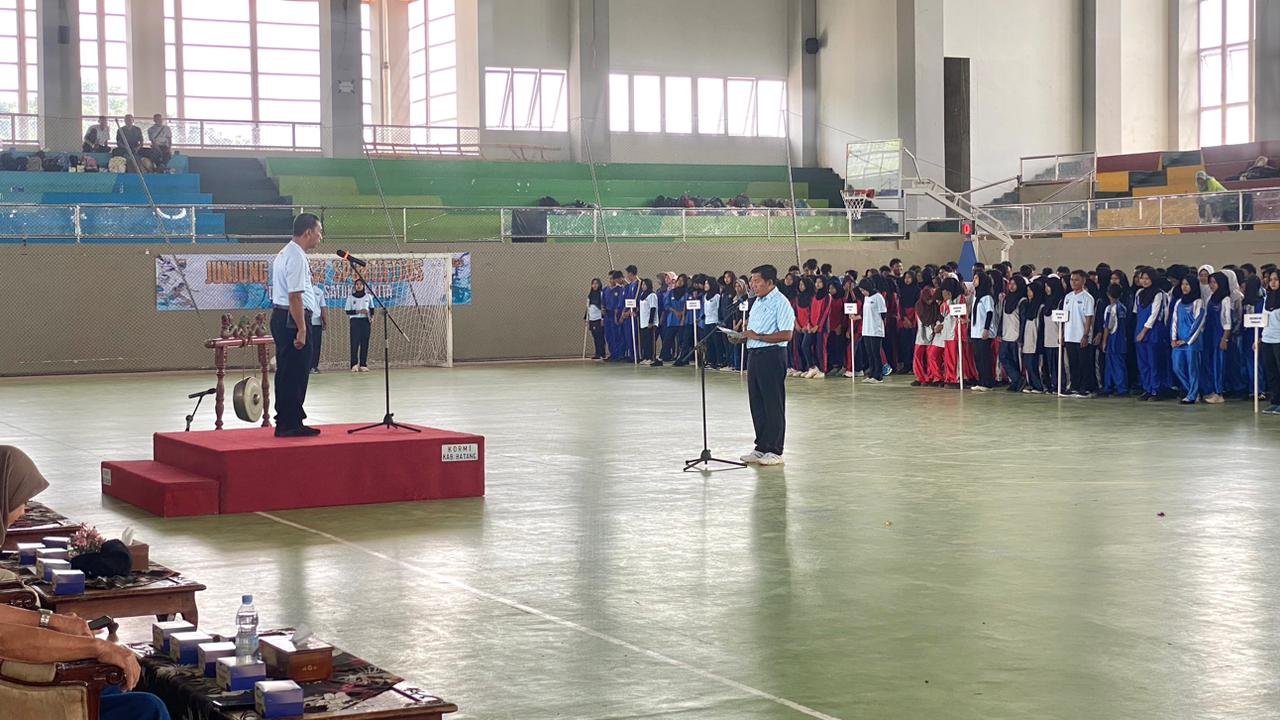 Batang – teraspanturanews.com Pekan Olahraga Pelajar Daerah (POPDA) Tingkat Kabupaten Batang Tahun 2025 resmi dibuka oleh Asisten Pemerintahan dan Kesejahteraan Rakyat Setda Batang Darsono di GOR Abirawa, Kabupaten Batang, Rabu (29/10/2025).
