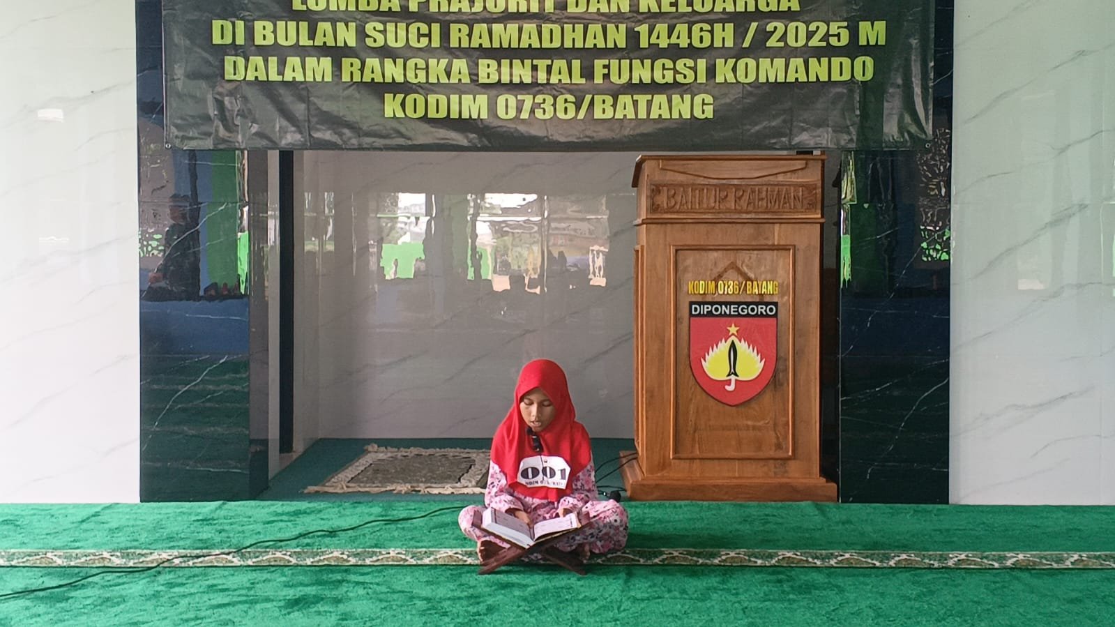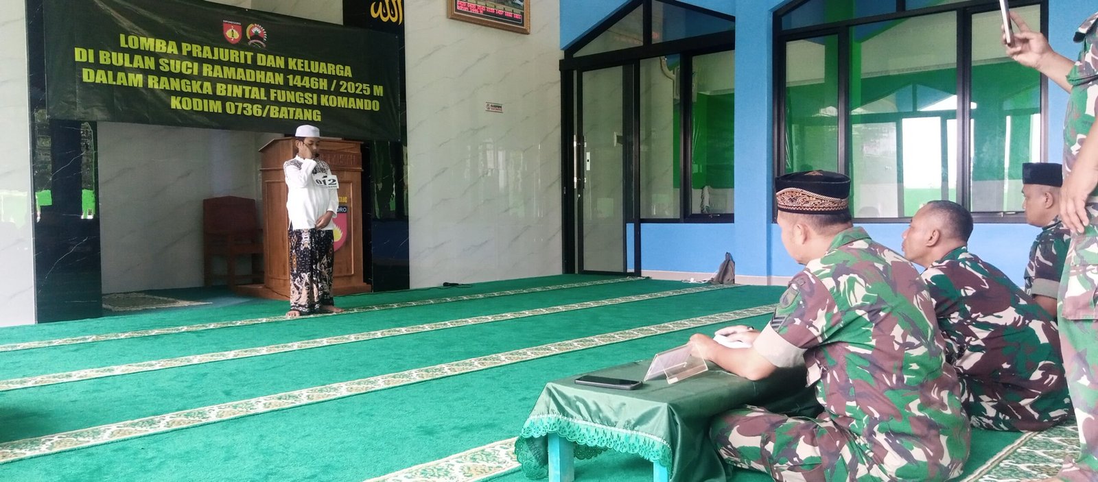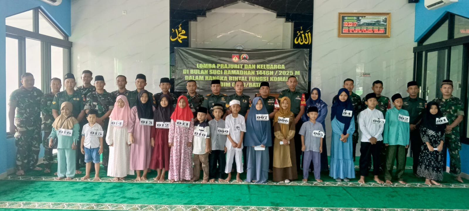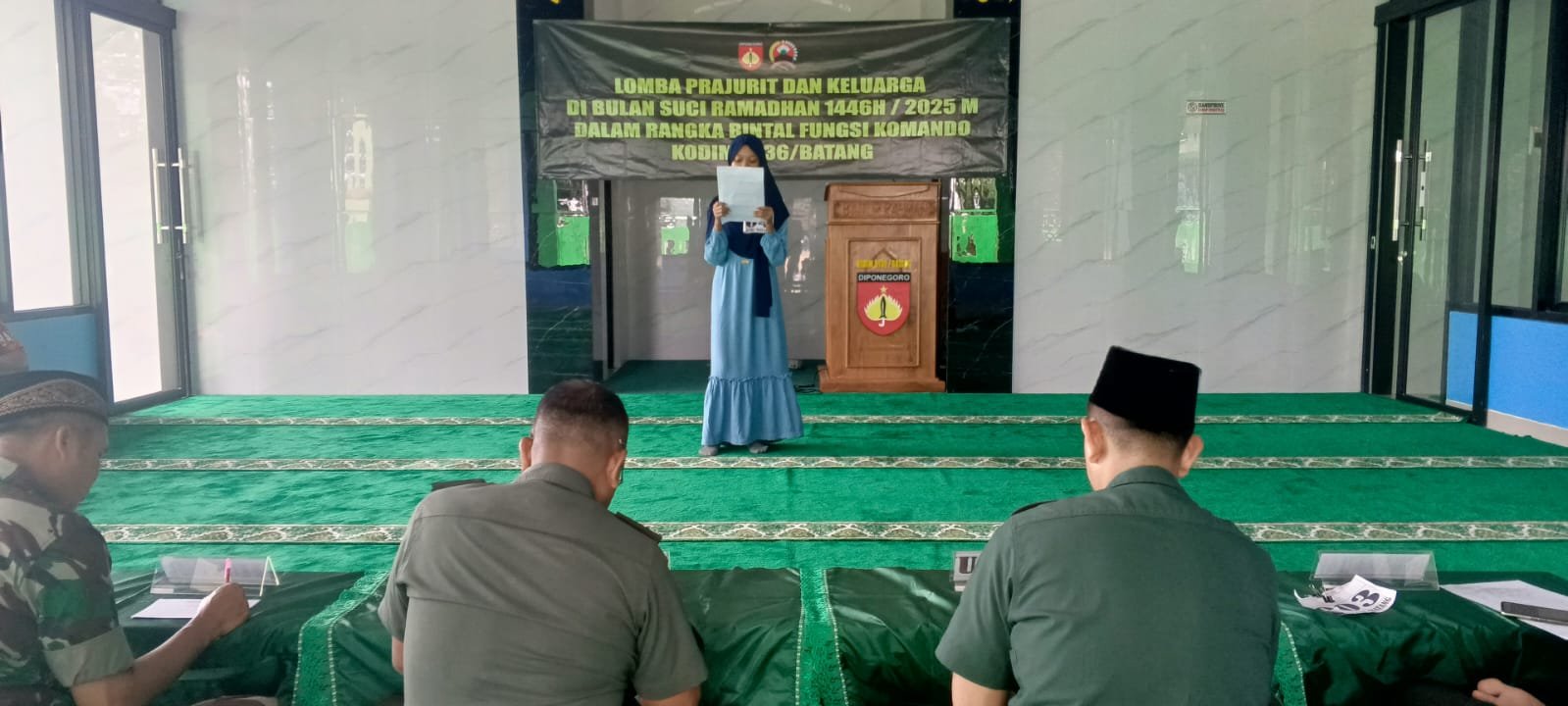 Batang-teraspanturanews.com Dalam rangka menyambut Bulan Suci Ramadhan 1446 H, Kodim 0736/Batang menggelar berbagai perlombaan sebagai sarana Bintal Fungsi Komando. Diantaranya Lomba Adzan, Ceramah, Baca Al Qur’an dan Hafalan Surat Pendek bagi anak-anak keluarga besar anggota Kodim 0736/Batang bertempat di Masjid Baiturahman yang berada di lapangan tembak Paraduta Desa Tragung, Kecamatan Kandeman Kabupaten Batang. Selasa (04/03/25).