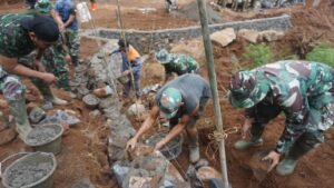Dia menambahkan, anggota Satgas dan warga bergotong-royong menyelesaikan pembangunan talud ini, diharap dengan semangat gotong royong pembangunan talud ini bisa terselesaikan dalam batas waktu yang telah ditentukan.”imbuhnya”.