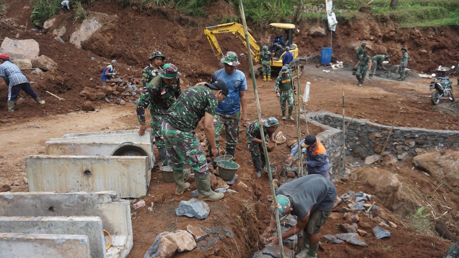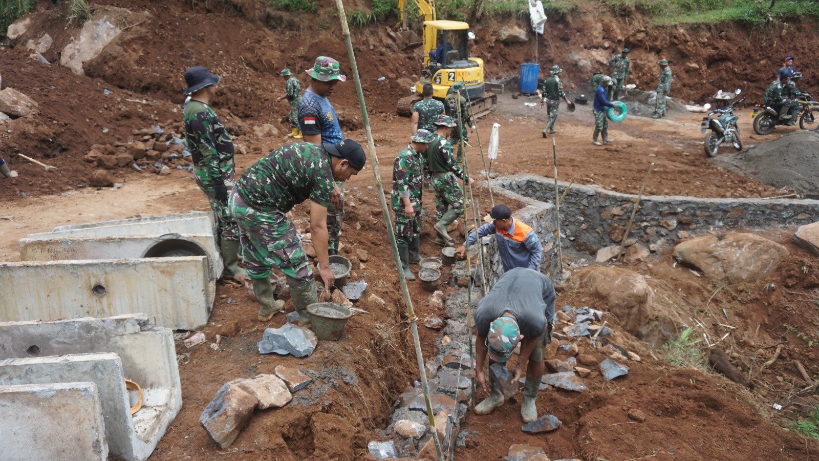Pembangunan talud tersebut memang cukup berat, hanya saja berkat pengerahan warga yang maksimal, saling bahu membahu antara Satgas TMMD dan sejumlah unsur lain sehingga talud pun sudah hampir selesai.