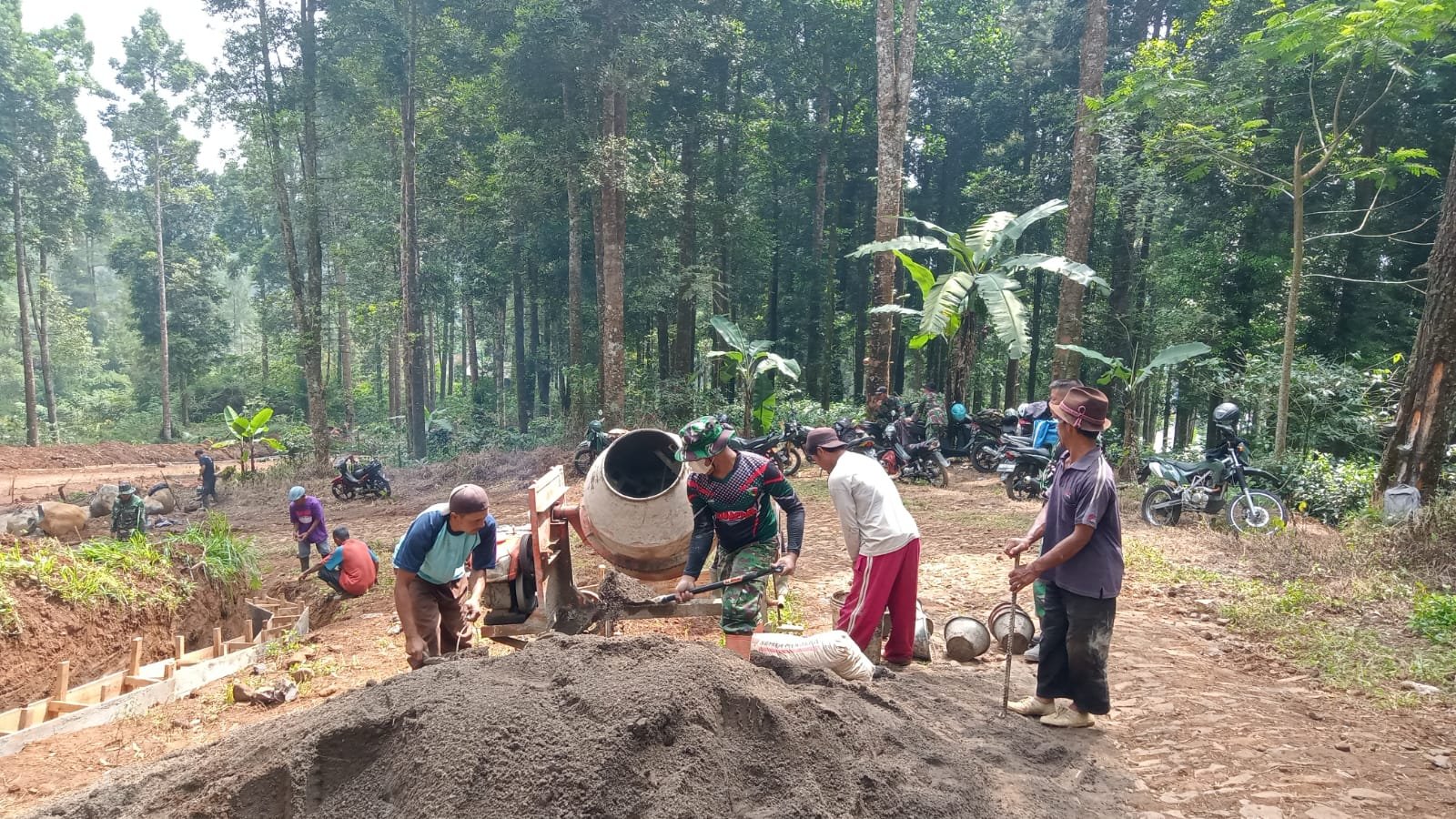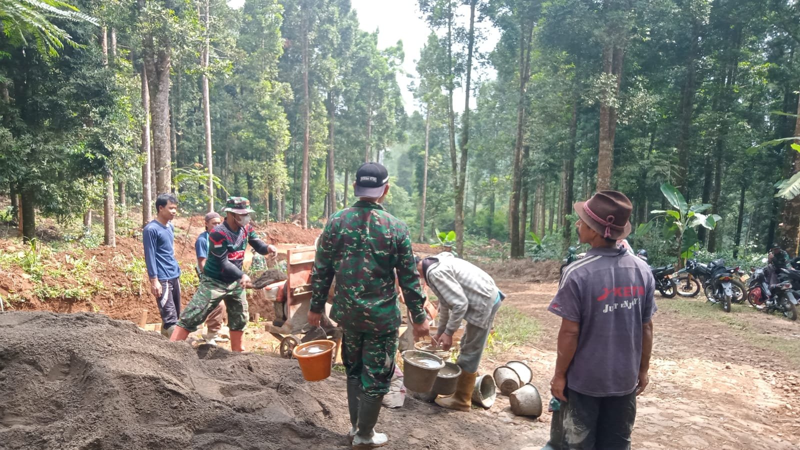 Semangat Anggota Satgas TMMD Reguler Ke 121 Desa Pacet, Ambil Air Untuk Adonan Semen Dan Pasir