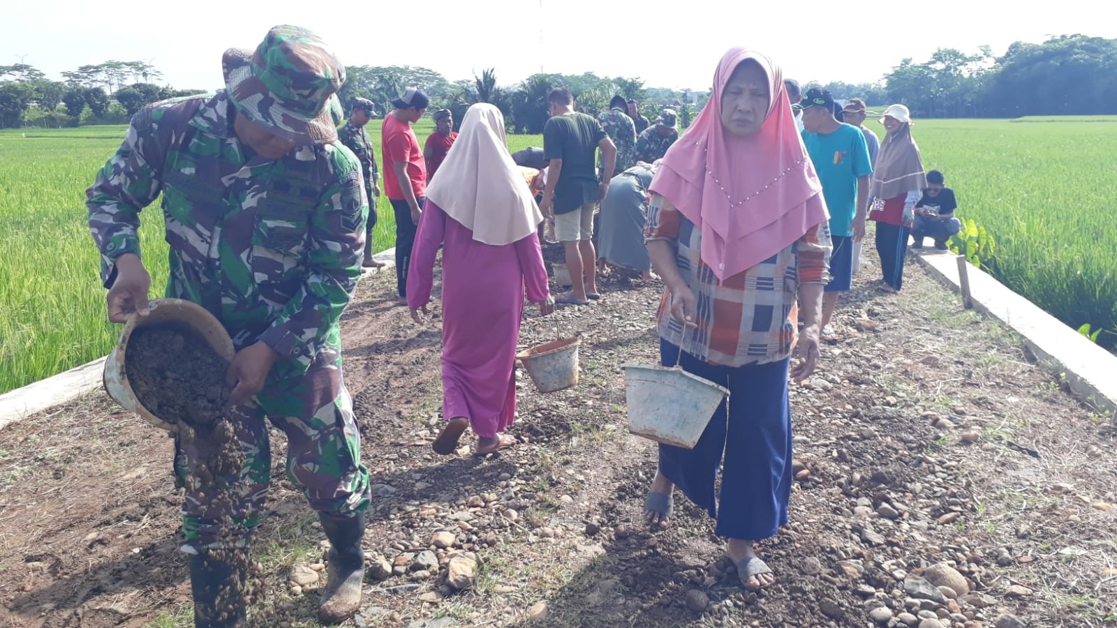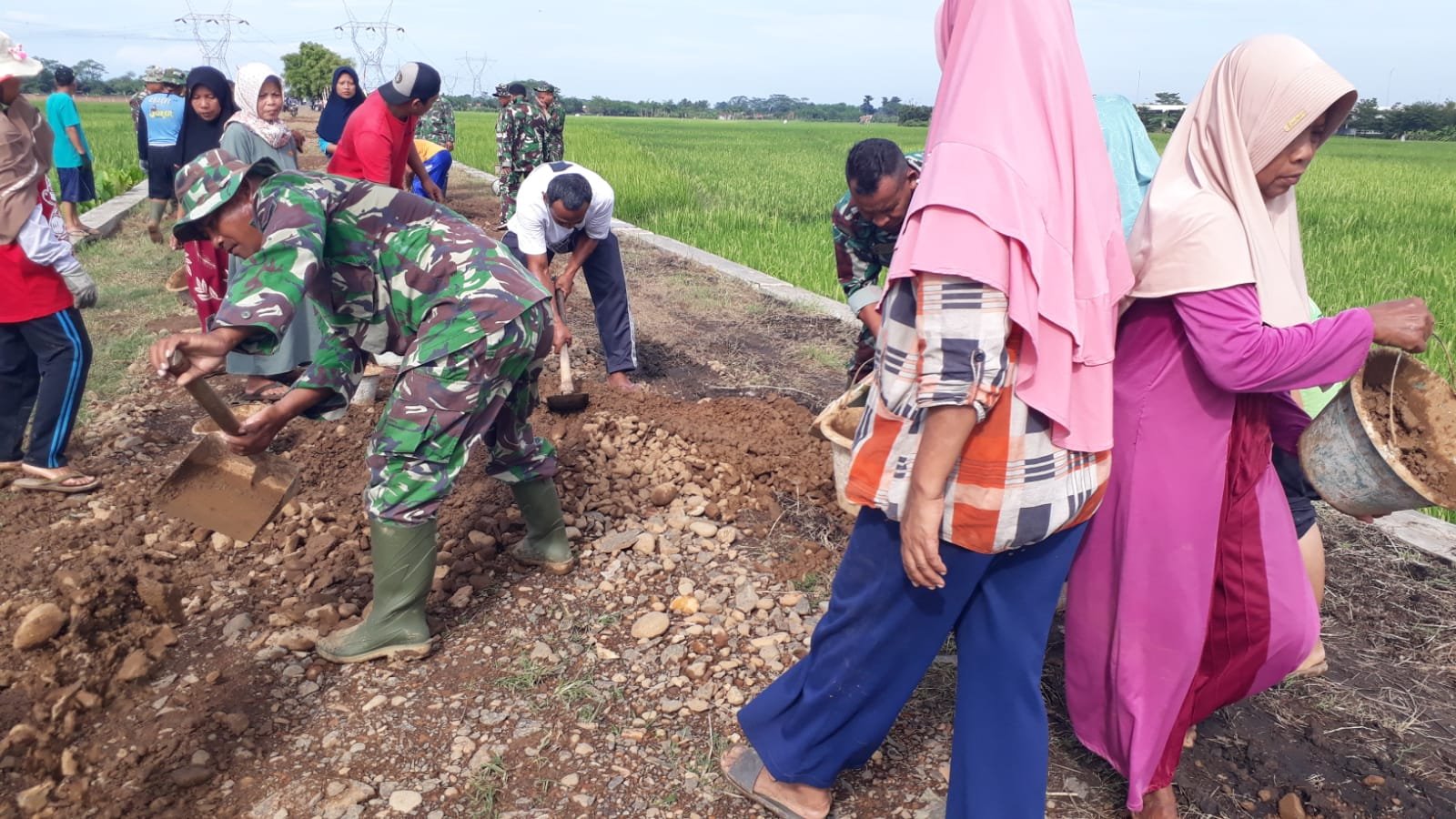 Keterlibatan mereka dalam pengerjaan fisik membangun jalan, menambah suasana semakin terlihat guyub. Tidak ada sekat pembatas antara TNI dan masyarakat, baik laki-laki maupun perempuan, saling bahu membahu agar cepat terwujud impian warga memiliki jalan yang bagus.