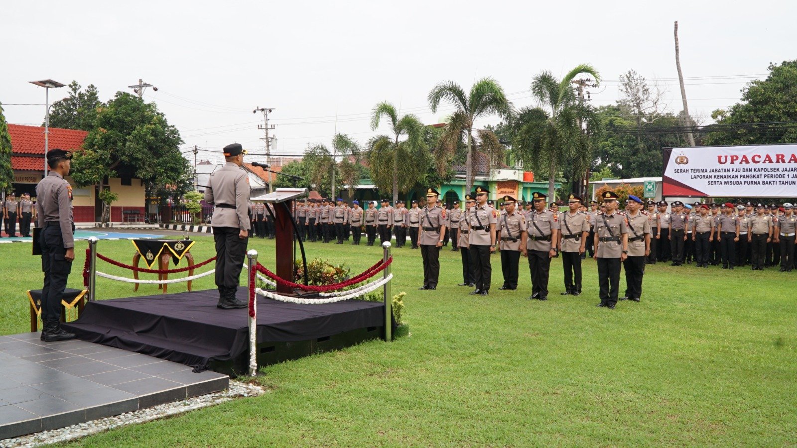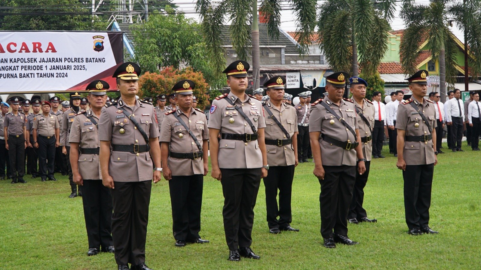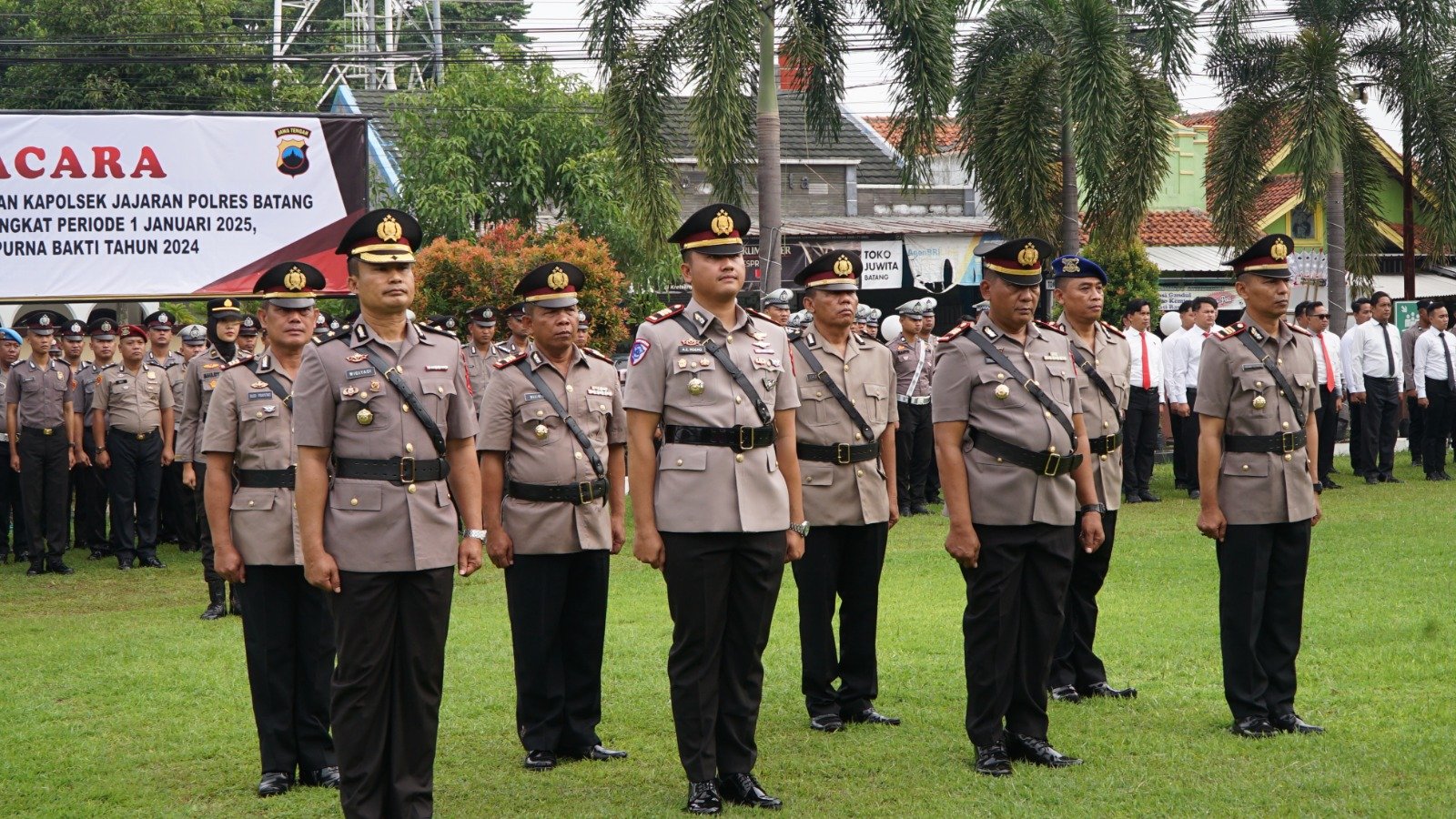 BATANG – Kapolres Batang AKBP Nur Cahyo Ari Prasetyo memimpin upacara serah terima jabatan pejabat utama (PJU) dan Kapolsek jajaran di Mapolres Batang, Jawa Tengah, Kamis, 4 Januari 2025. Acara ini dirangkai dengan prosesi kenaikan pangkat periode 1 Januari 2025 dan wisuda purna bakti personel tahun 2024.