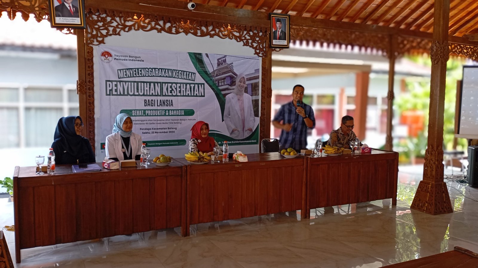 Demikian Pramudito memberikan ulasan pada sesi pembukaan penyuluhan kesehatan bagi lansia yang dilakukan di Pendopo Kecamatan Batang Sabtu, 23/11/2024.