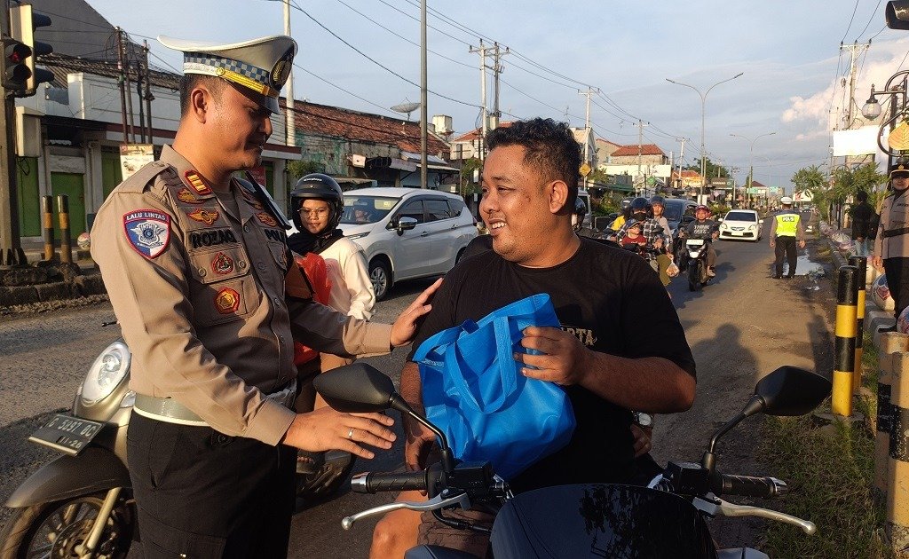 Tak hanya itu, ternyata keduanya justru mendapat paket takjil yang diberikan langsung oleh Kasatlantas, untuk dinikmati saat buka puasa.