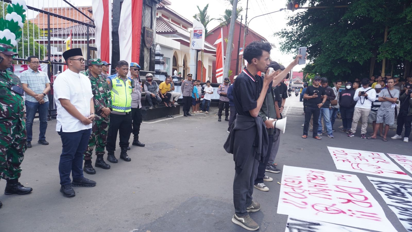 Batang -teraspanturanews.com Bupati Batang, M. Faiz Kurniawan, turun langsung menemui ratusan pendemo yang terdiri dari mahasiswa dan buruh di Jalan Veteran, Kabupaten Batang, Sabtu (30/8/2025).