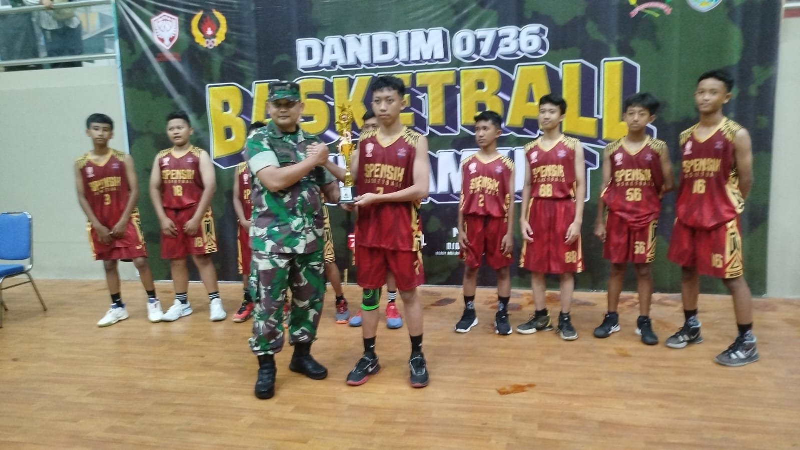 Batang – Dandim Batang Letkol Inf. Ahmad Alam Budiman menyerahkan tropi dan uang pembinaan kepada para pemenang Turnamen Bola Basket Dandim Cup Tahun 2024. Juara putra dan putri di semua jenjang nantinya akan menjadi cikal bakal penerus atlet bola basket Batang, di kancah Nasional.