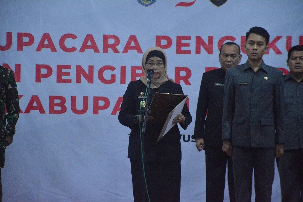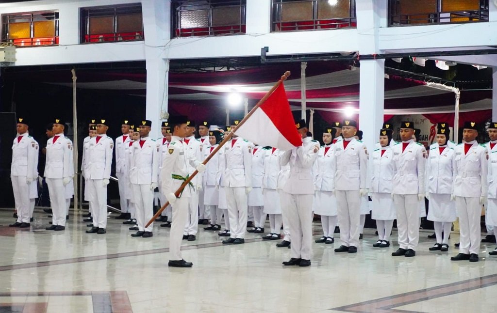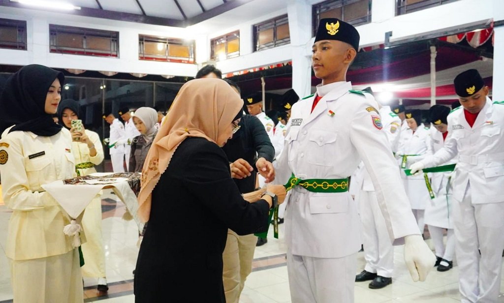 Batang – Penjabat (Pj) Bupati Batang Lani Dwi Rejeki mengukuhkan Pasukan Pengibar Bendera Pusaka (Paskibraka) di Pendapa Kabupaten Batang, Kamis (15/8/2024) malam.