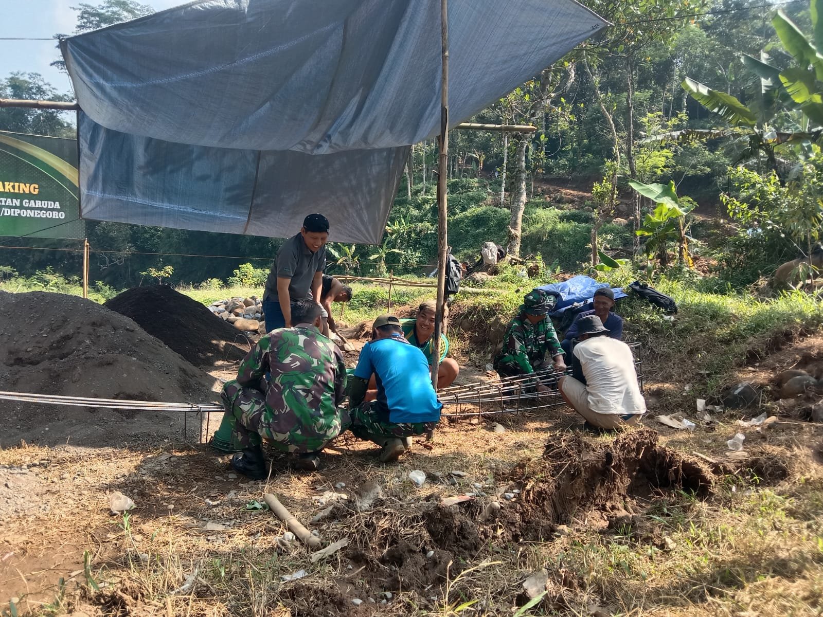 Batang,- teraspanturanews.com Dalam proses pembangunan Jembatan garuda di Desa Tambahrejo, kekokohan struktur jembatan menjadi prioritas utama. Untuk itu, diperlukan besi pengecoran yang kuat dan besar.Anggota Koramil 07/Bandar Kodim 0736/Batang bersama warga dengan penuh semangat merakit besi cor menjadi cicin cor dan cakar ayam untuk pondasi tiang agar jembatan menjadi kokoh pada hari Kamis, 09 April 2026.