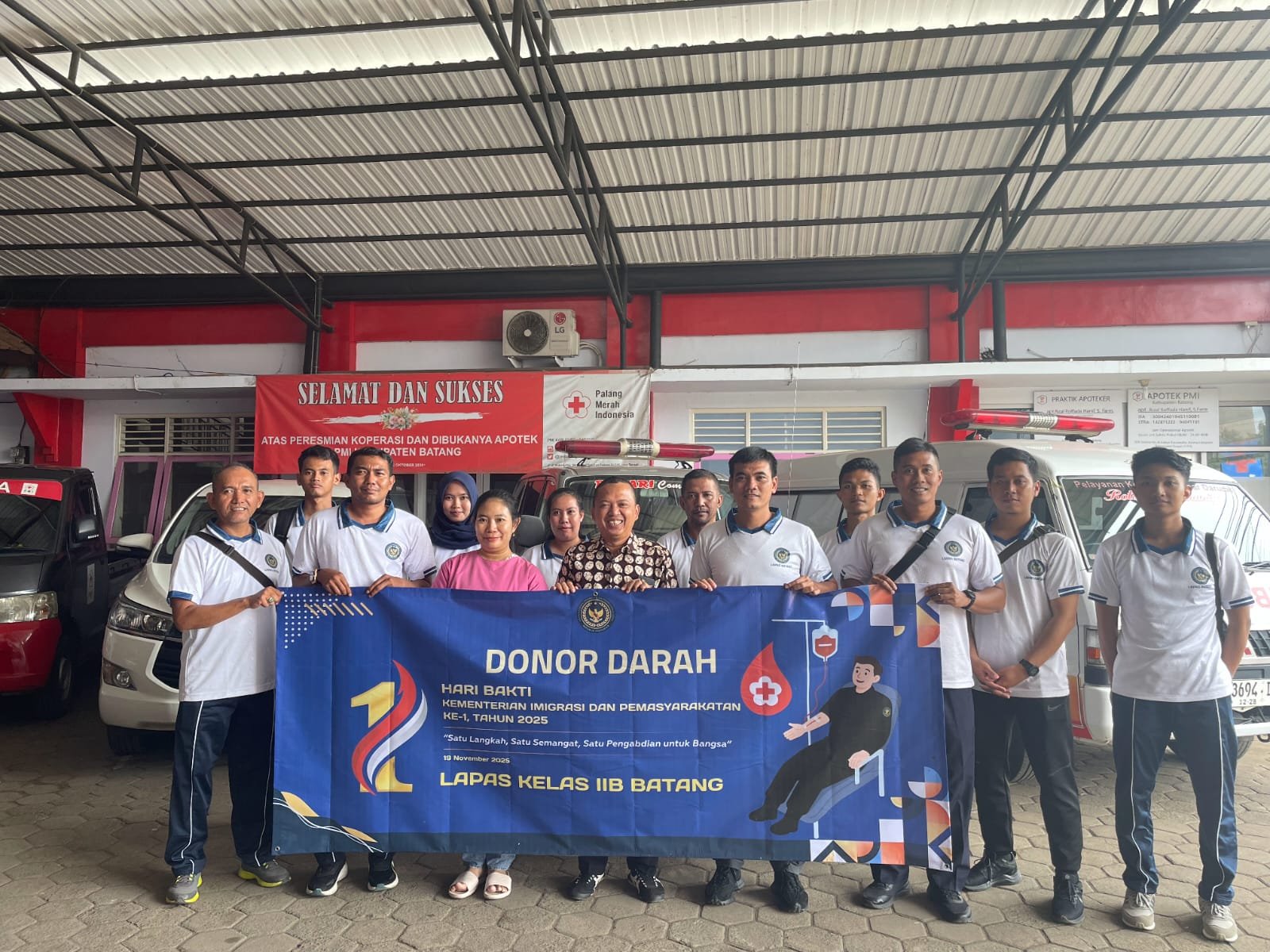 Batang – teraspanturanews.com Lembaga Pemasyarakatan (Lapas) Kelas IIB Batang melaksanakan donor darah dalam rangka memperingati Hari Bakti Kementerian Imigrasi dan Pemasyarakatan (Kemenimipas) Ke-1, di Aula PMI Batang, Kabupaten Batang, Senin (17/11/2025).