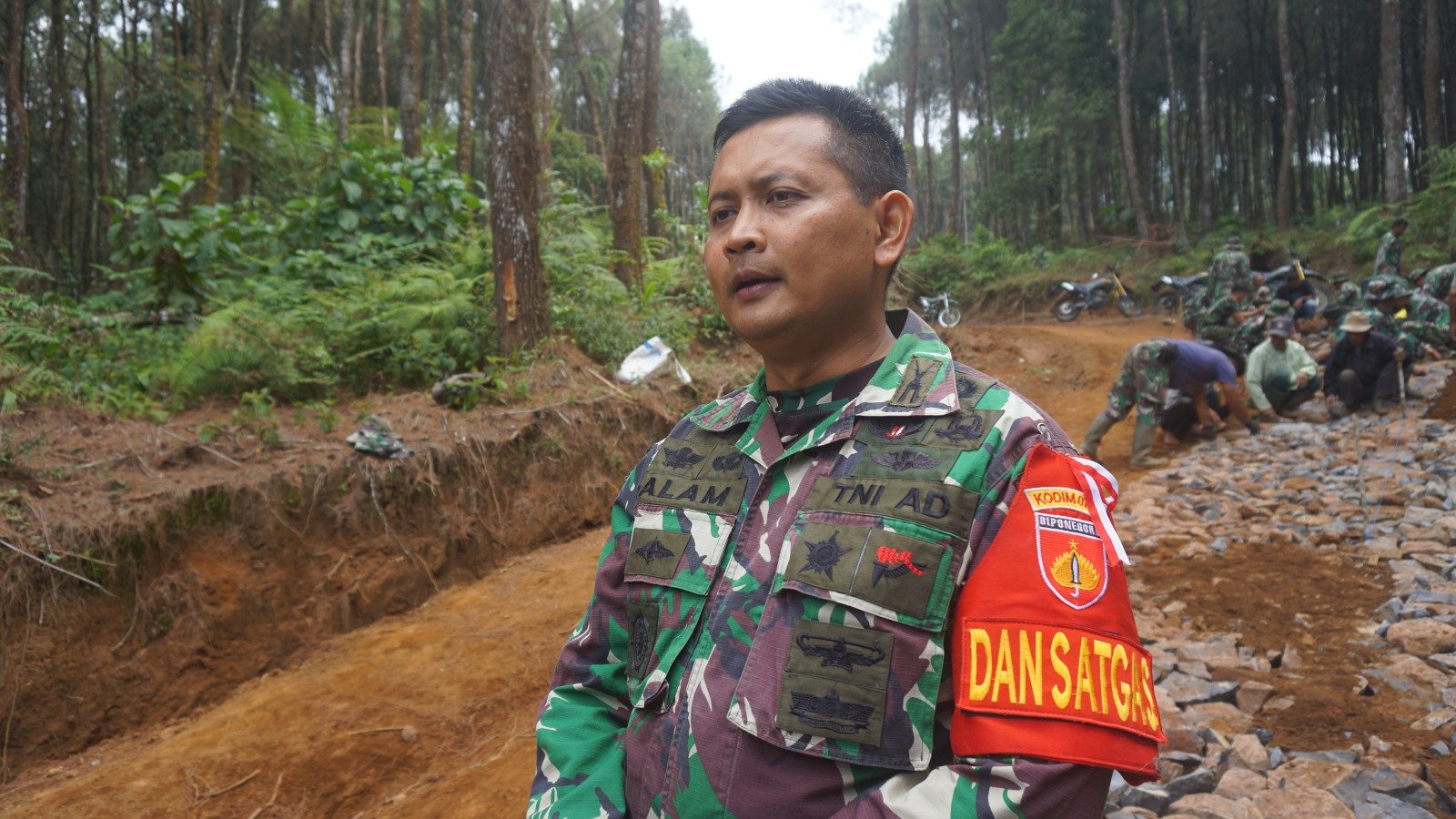 Untuk menyelesaikan jalan tembus, pihaknya mengerahkan dua Satgas sekaligus dari jajaran Kodam IV Diponegoro dan Satgas dari Kodim Batang yang dibantu masyarakat setempat selama tiga puluh hari bergotong-royong memecah batu dan menata satu persatu menjadi jalan makadam.